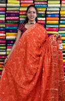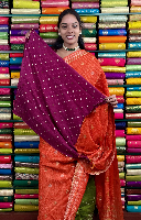 Mashru Silk Gold Zari Checks And Butti Bright Orange With Wine Saree