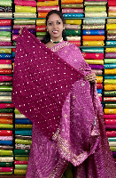 Mashru Silk Gold Zari Checks And Butti Dark Onion Pink With Wine Saree