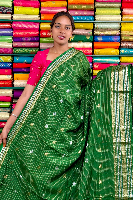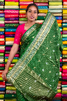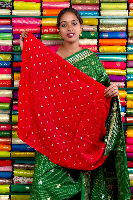 Mashru Silk Gold Zari Checks And Butti Green With Red Saree