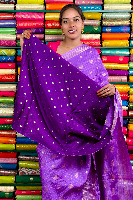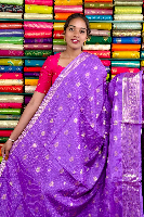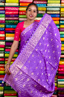 Mashru Silk Gold Zari Checks And Butti Lavender With Purple Saree