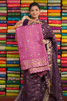 Mashru Silk Gold Zari Checks And Butti Onion Pink With Wine Saree