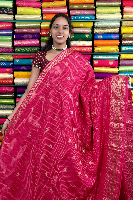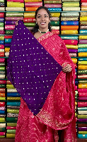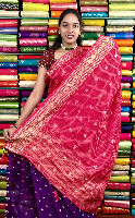 Mashru Silk Gold Zari Checks And Butti Pink With Purple Saree