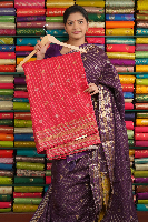 Mashru Silk Gold Zari Checks And Butti Pink With Purple Saree