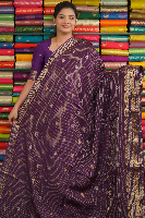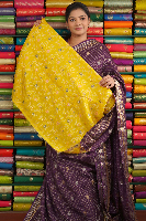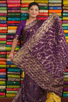 Mashru Silk Gold Zari Checks And Butti Purple With Yellow Saree
