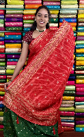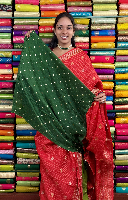 Mashru Silk Gold Zari Checks And Butti Red With Green Saree