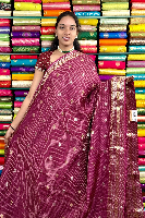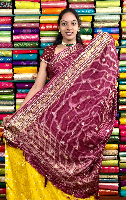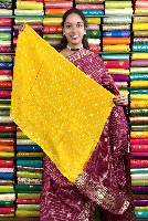 Mashru Silk Gold Zari Checks And Butti Wine With Yellow Saree