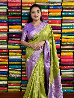 Mashru Silk Jumka Design Light ParrotGreen And Lavender Saree