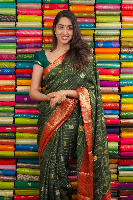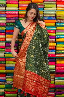 Mashru Silk Kanchi Border And Checks Butti Green With Red Saree
