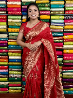 Mashru Silk Zari Butta Red Saree