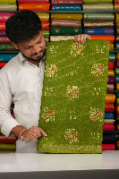 Mat Georgette Check With Gold Zari Elephant Print Dark Mehandi Green Saree