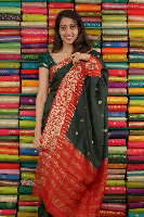 Matka Silk Gold Zari And Butti Bottle Green With Red Saree