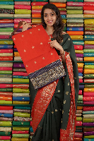 Matka Silk Gold Zari And Butti Red With Navy Blue Saree
