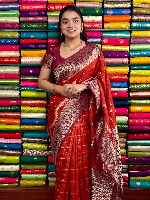 Matka Silk Kanchi Checks Rust Orange With Wine Saree