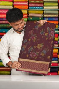 Maty Georgette Floral Digital Print Arani Border Dark Wine Saree
