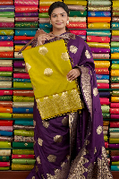 Maty Georgette Gold Zari Floral Butti Pesara Green Saree