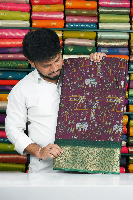 Maty Georgette Kalamkari Print Dark Magenta Pink With Green Saree