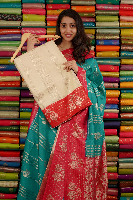 Maty Georgette Peacock Border And Lines Cream With Red Saree