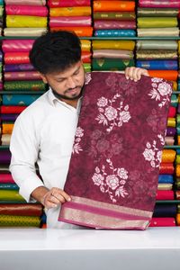 Maty Georgette Shibori Floral Digital Print Dark Wine Saree