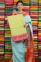Maty Georgette Zari Checks Light Yellow With Pink Saree