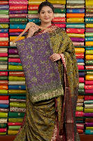 Modal Silk Kalamkari Print Purple With Green Saree