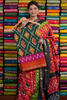 Modal Silk Printed Bottle Green With Rust Orange Saree