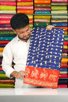 Munga Crepe Silk Checks Mango Butti Peacock Border Dark Navy Blue With Red Saree