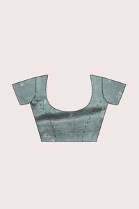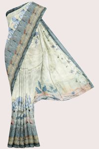 Paper Tissue Silk With Digital Print Ash With Light Green Mix Saree