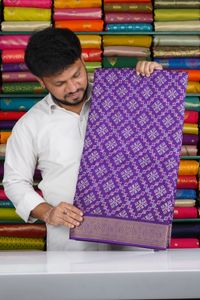 Patola Silk Emboose Weaving Zari Border Dark Purple Saree