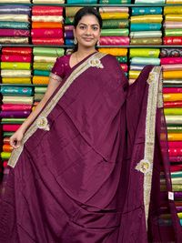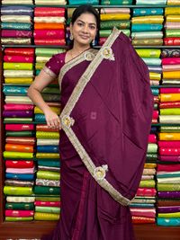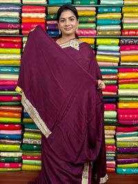 Pure Crepe Handmade Stone And Pals Work Wine Saree