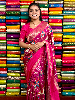 Pure Crepe Ikkath Print With Zari Butta Magentha And Pink Saree