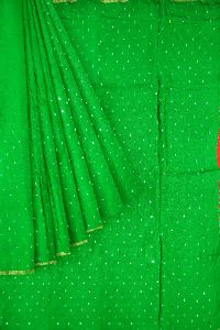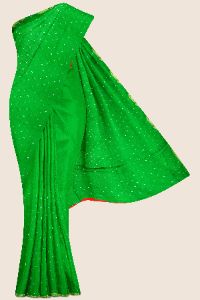 Pure Crepe Mirror Work Dark Green And Pink Saree