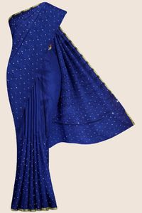 Pure Crepe Mirror Work Navy Blue And Red Saree