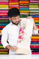 Pure French Chiffon Floral Digital Print Half White Saree