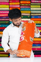 Pure French Chiffon Floral Digital Print Rust Orange Saree