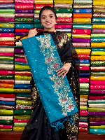 Pure Jute Silk Floral Border And Butti Blue Saree