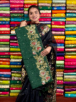 Pure Jute Silk Floral Border And Butti Bottle Green Saree