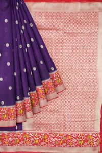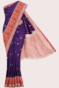 Pythoni Meenakari Weaving Butti Dark Purple With Maroon And Pink Mixed Saree