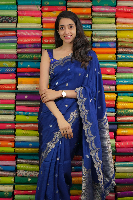 Rassian Crepe Zari Scallop Border NavyBlue Saree