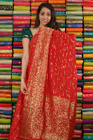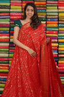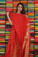 Russian Crepe Gold Zari And Checks Butti Red Saree