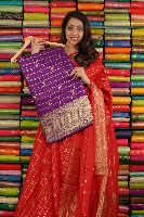 Russian Crepe Gold Zari And Checks Purple Saree