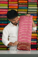 Russian Crepe Silk checks Flower Butti Dark Baby Pink With Maroon Saree