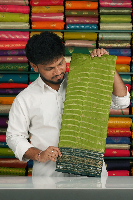 Russian Crepe Silk checks Flower Butti Dark Parrot Green With Dark Green Saree