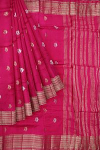 Russian Crepe Silk Silver And Gold Zari Weaving And Butti Dark Pink Saree