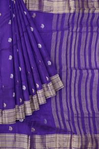 Russian Crepe Silk Silver And Gold Zari Weaving And Butti Dark Purple Saree