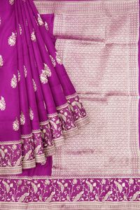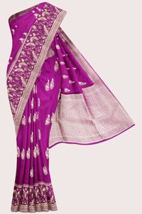 Russian Georgette Pecock And Louts Butti Zari Weaving Dark Magenta Pink Saree