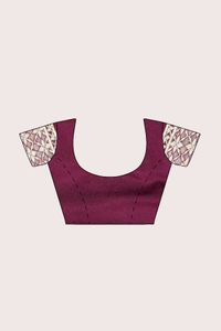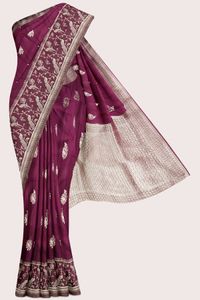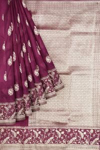 Russian Georgette Pecock And Louts Butti Zari Weaving Dark Maroon With Wine Mix Saree
