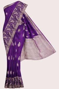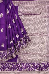 Russian Georgette Pecock And Louts Butti Zari Weaving Purple Saree