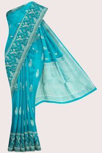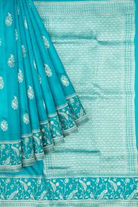 Russian Georgette Pecock And Louts Butti Zari Weaving Rama Green Saree