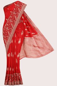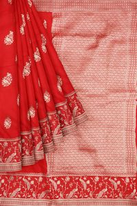 Russian Georgette Pecock And Louts Butti Zari Weaving Red Saree