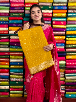 Russian Georgette Sequence Lines Yellow With Red Saree